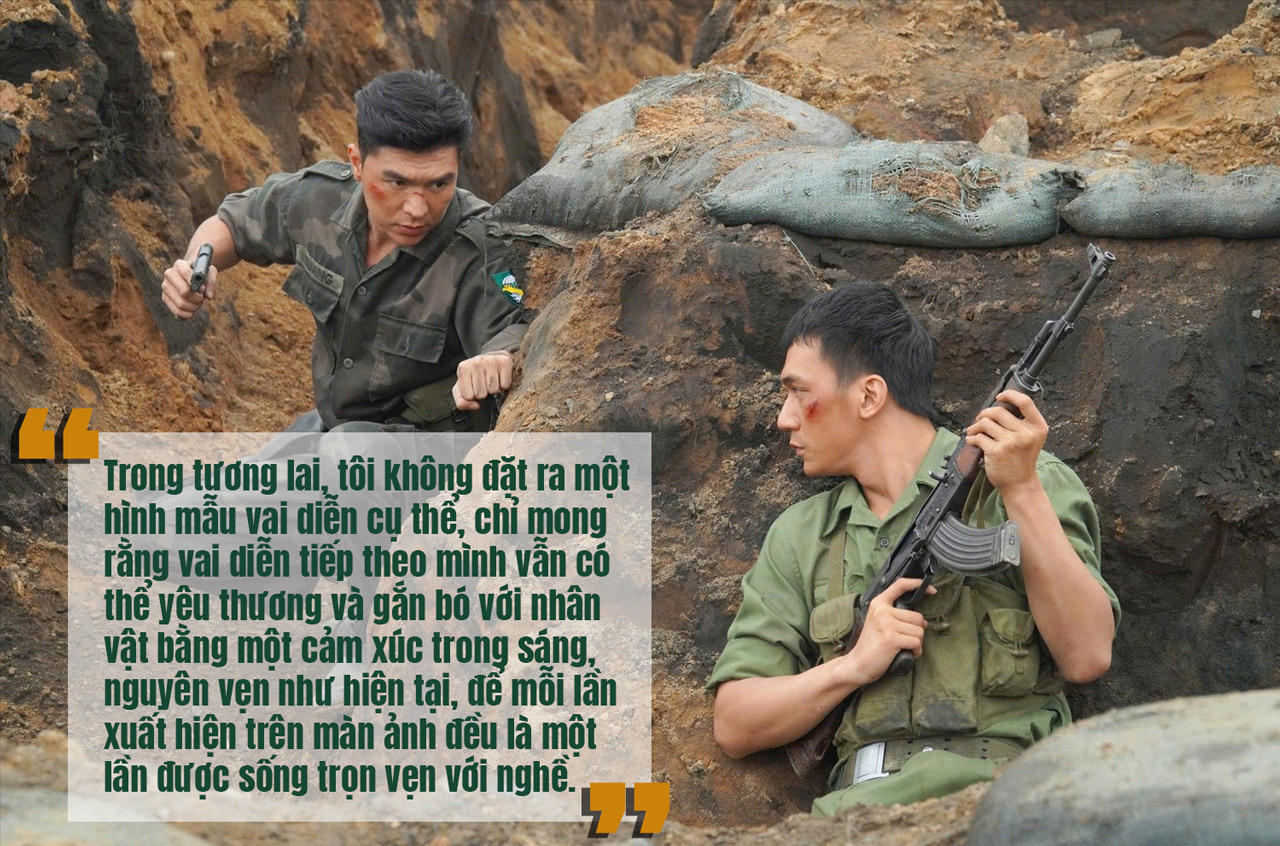 - Sau thành công của "Mưa đỏ", tôi cảm nhận rõ nhất là mình đã chạm tới một ước mơ tuổi thơ, được khoác lên mình hình ảnh người lính, được sống trong một câu chuyện mang giá trị lịch sử và tinh thần dân tộc. Vai Cường là một vai diễn thành công, thậm chí có thể là vai diễn thành công nhất ở thời điểm hiện tại trong hành trình làm nghề của tôi.